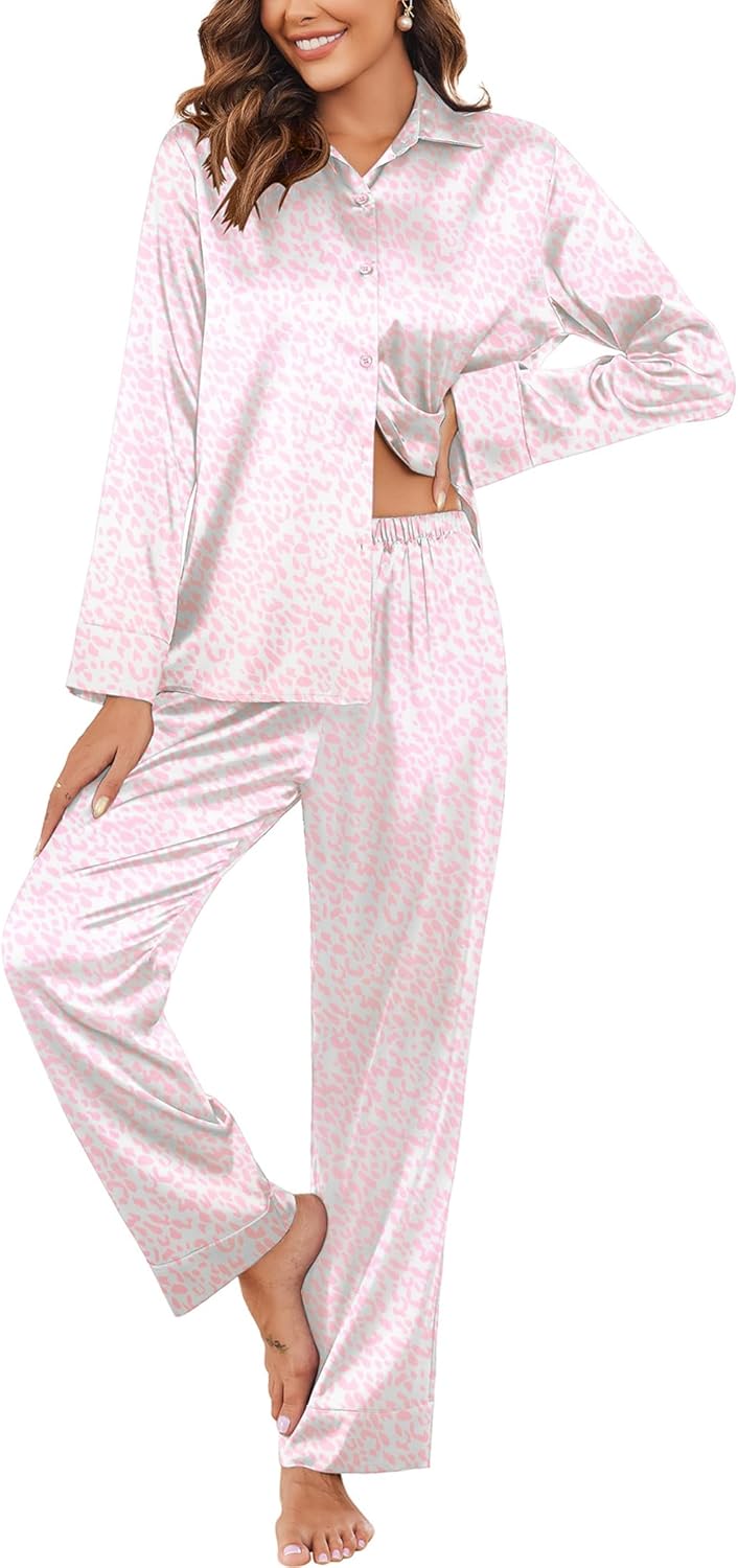 Classic Satin Pajamas for Women Long Sleeve Button Down Sleepwear Soft Silk Loungewear Pjs Set S-XXL