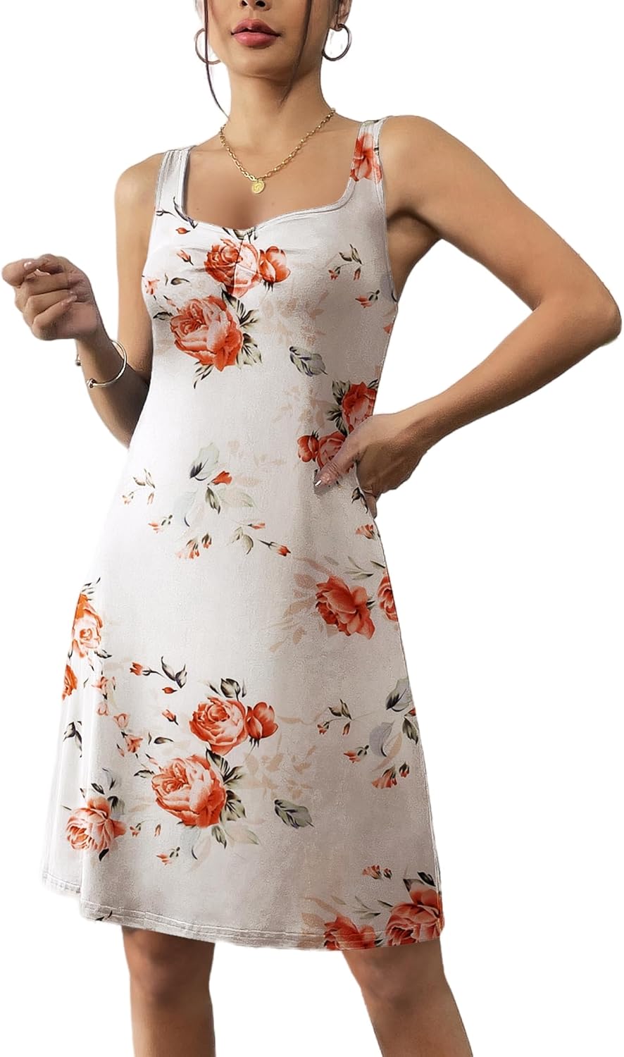 • 【Soft Material】:The sleeveless nightgowns for women is made of 95% polyester 5% spandex, skin friendly and soft fabric provides you the most comfortable feelings while you rest.The length of the nightgown is about knee length. If you are tall, it may be shorter.