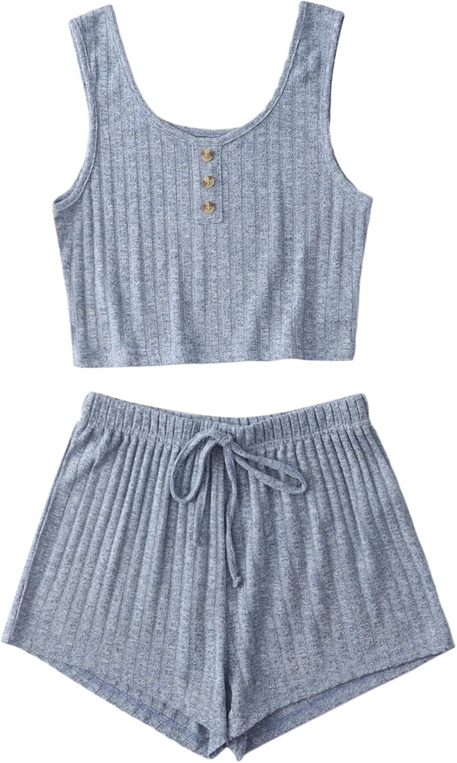 Women’s Button Front Ribbed Knit Tank Top and Shorts Pajama Set Sleepwear Lounge Sets